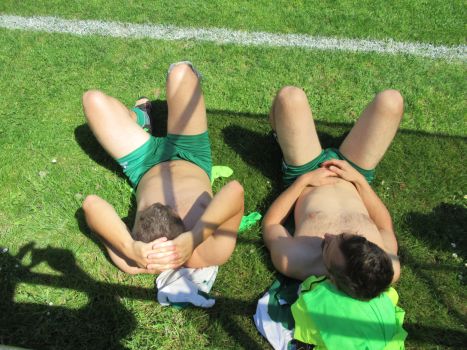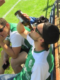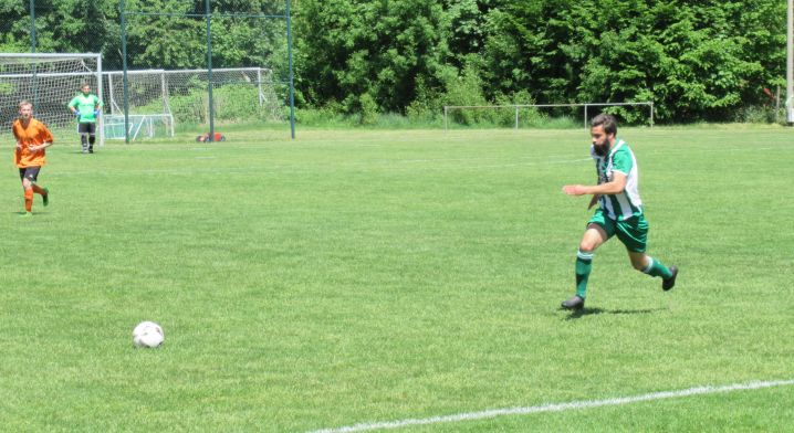 Es ging auch sehr fair zu auf dem Spielfeld. Die Spieler hatten mehr mit den sommerlichen Temperaturen als mit den Gegnern zu kämpfen. Schwabach zog sich weit in die eigene Hälfte zurück und entwickelte praktisch keine Gefahr nach vorne. Die EKSG machte das Spiel, suchte aber irgendwie nicht konsequent den Abschluss und so blieb es zunächst torlos. In der 19.min dann Zimbo endlich mal in guter Schussposition. Ein Verteidiger fährt im in die Beine und es gibt folgerichtig Strafstoß, den Luggi Martiska kaltblütig verwandelt zum 0:1. Wenig später jagt der quirlige Ziad dem Gegner mal wieder den Ball ab. Hannes Ender der mit aufgerückte Verteidger zieht ab und versenkt das Leder aus 17 m zum 0:2. Flo Fischer heute bei Rummelsberg im Tor musste nur hie und da zu weit geschlagene Bälle des Gegners abfangen und mehr oder weniger anspruchsvolle Rückpässe gewohnt souverän weiter verteilen. Vorne aber die EKSG lange Zeit immer wieder zu zaghaft im Abschluss. Für die letzten 20 Minuten kam dann der bislang geschonte Goalgetter Schlagenhaufer auf's Feld. Überraschend gab es dann auch mal sowas wie eine Kontersituation für die EKSG. Schlaggi nimmt über rechts Geschwindigkeit auf. lässt einen Gegner stehen und verlädt den Keeper zum 0:3. Weitere gute Chancen wurden nicht genutzt, es blieb bei diesem Resultat – man muss es ja nicht übertreiben bei diesen Temperaturen.
